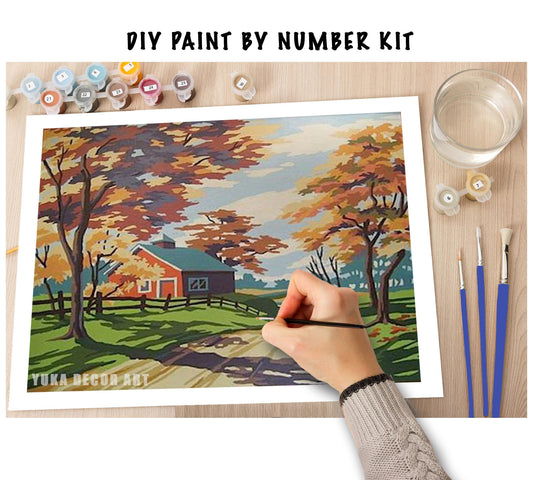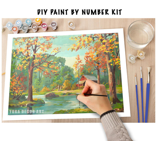 Autumn Landscape PAINT by NUMBER Kit Adult DIY by Numbers Painting Vintage Art Wall Decor Rustic Cabin Decor Birthday Hobby Gift For Wife