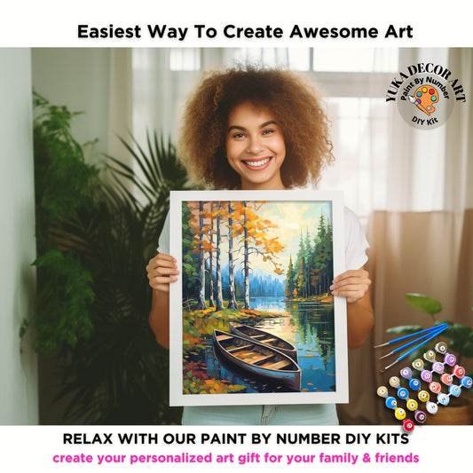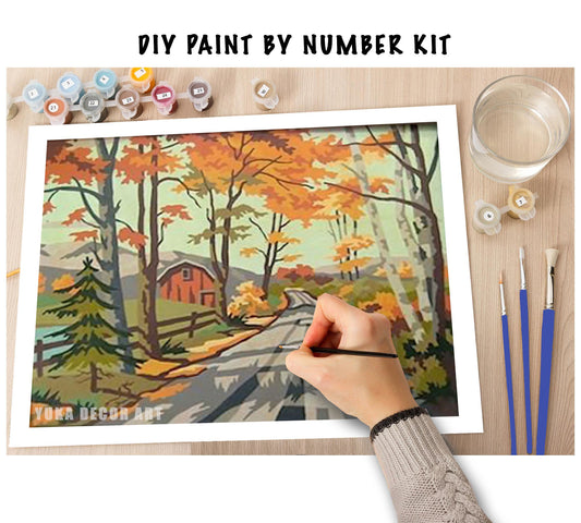 Autumn Inspired PAINT by NUMBER Kit for Adult , DIY Nature Vintage Style Art , Easy Beginner Acrylic Painting Kit,Vintage Decor Gift