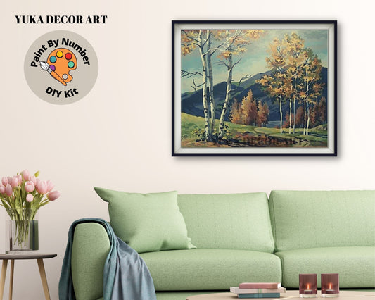 Autumn Trees PAINT by NUMBER Kit for Adult , DIY Nature Vintage Style Art , Easy Beginner Acrylic Painting Kit,Vintage Decor Gift