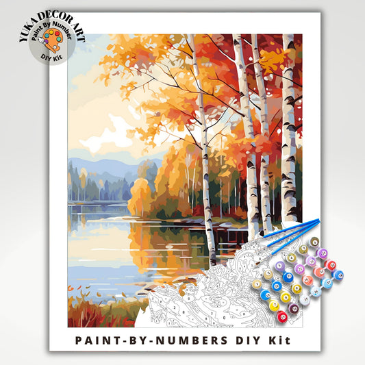 Autumn Forest View PAINT by NUMBER Kit Adult Nature Painting DIY by Numbers Easy Beginners Holiday Activity Birthday Gift For Mom Girlfriend