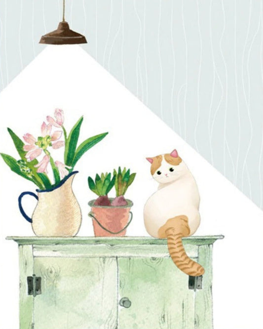 PAINT by NUMBER Kit Adult ,Minimalist Wall Art, Cat With Lamp and Plants , Easy DIY Beginners Acrylic Painting Kit , Wall Art Gift