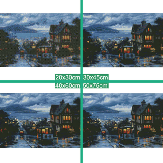 Seascape PAINT by NUMBER Kit for Adult , Rocky Cliff Village on Seashore ,Waves Beach scene, Beginner Acrylic Painting Kit,Home Decor Gift