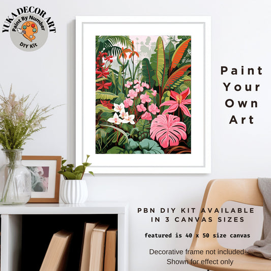 Tropical Forest PAINT by NUMBER Kit for Adults , Vibrant Foliage Painting, Easy Adult Hobby DIY Kit , Canvas Wall Art Decor , Gift for Mom