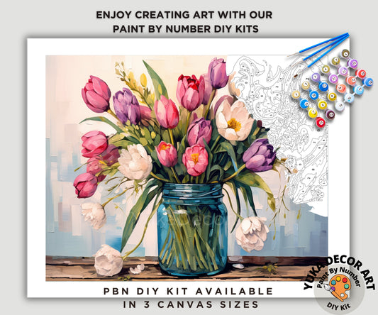 Vintage Flowers PAINT by NUMBER Kit Adult, Flowers Vase Still life Art ,Easy Beginner Acrylic Diy Painting | Gift for Wife Girlfriend Mom