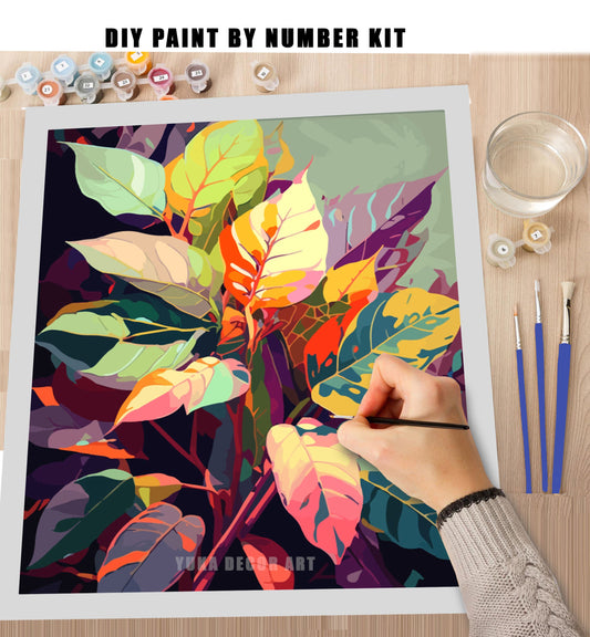 Vibrant Leaves PAINT by NUMBER Kit for Adults ,Colorful Foliage Painting,Easy Adult Hobby DIY Kit ,Canvas Wall Art Decor