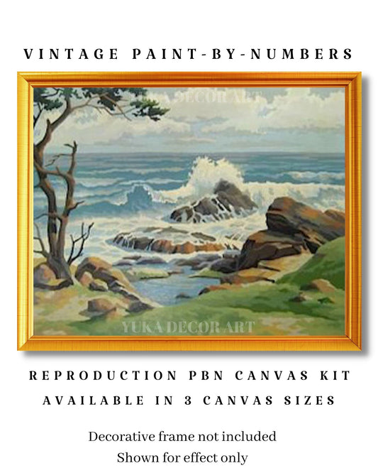Vintage PAINT by NUMBER Kit for Adult , DIY Seashore Waves Painting , Easy Beginner Acrylic Painting ,Vintage DecorKit,Home Decor Gift