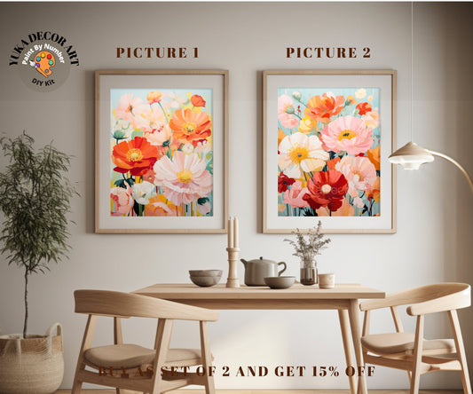 Valley flowers PAINT by NUMBER Kit Adults | Set Of 2 | WildFlowers DIY Painting Easy Beginners Hobby Wall Art Birthday Gift Girlfriend Mom