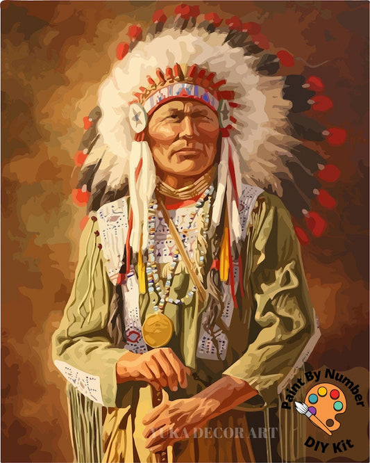 Vintage PAINT by NUMBERS DIY Kit for Adult Native American Chief Vintage Style Art Cabin Decor Easy Acrylic Paint Kit Wall Art Gift For Dad