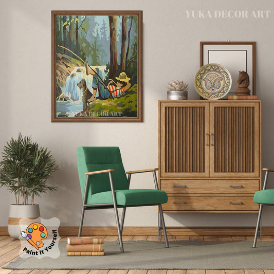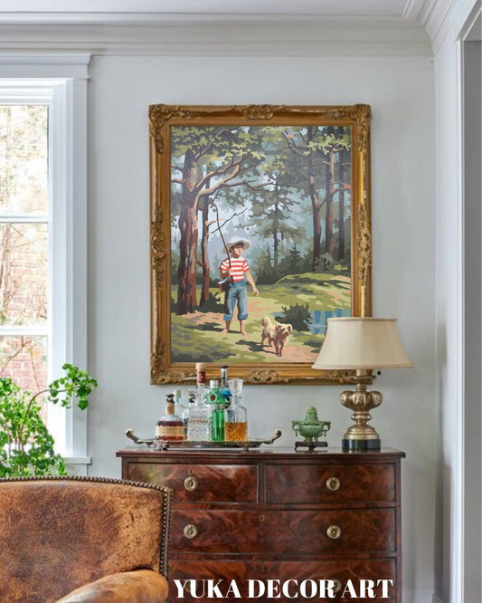 Vintage PAINT by NUMBERS for Adult, Boy Fishing In Stream, Easy Beginner Acrylic Painting Kit,Vintage Decor Gift