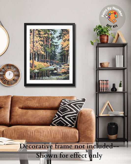 Vintage Style PAINT by NUMBER Kit Adult, Stream River Landscape Fall Colors Art , Easy Beginner Acrylic Painting DIY Kit,Home Decor Gift