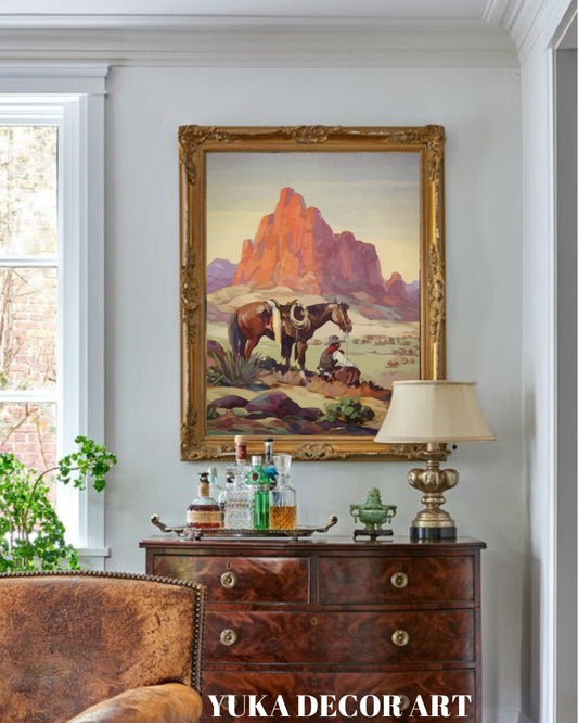 Vintage Style PAINT by NUMBERS Kit Adult Cowboy Ranch Scene Art Easy Beginner Acrylic Painting DIY Hobby Home Cabin Decor Gift For Granddad