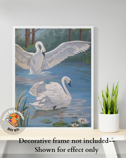 Vintage Style White Swans PAINT by NUMBER Kit for Adult , DIY Paint Kit Birds In Lake , Easy Beginner Acrylic Painting, Home Decor Gift