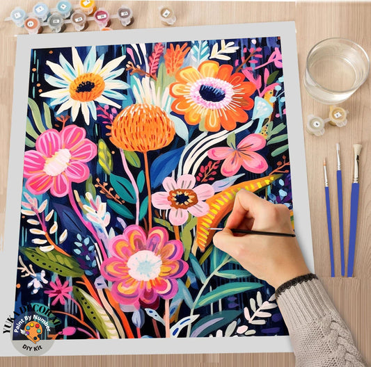 WildFlowers PAINT by NUMBERS Kit Adults Garden DIY Painting Chic Floral Easy Beginners Paint Hobby Kit Wall Decor Art Gift