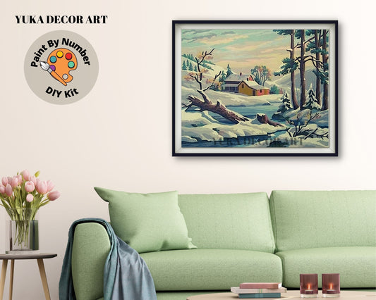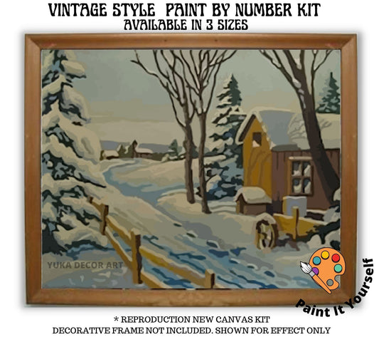 Winter Scene PAINT by NUMBER Kit for Adult , DIY Nature Vintage Style Art , Easy Beginner Acrylic Painting Kit,Vintage Decor Gift