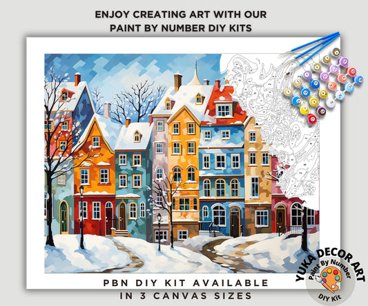 Winter Vintage Art PAINT by NUMBERS DIY Kit Adult Retro Colorful Town Scene Acrylic Painting Easy Beginner Craft Kit Mom Dad Birthday Gift