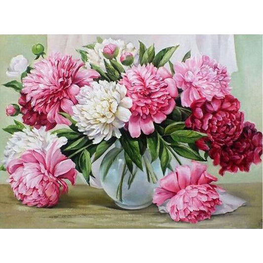 PINK & WHITE FLOWERS IN VASE Diamond Painting Kit