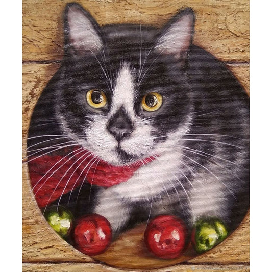 CAT WITH CHRISTMAS POMPOMS Diamond Painting Kit