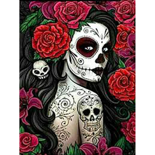 SKULL TATTOO LADY ROSE Diamond Painting Kit