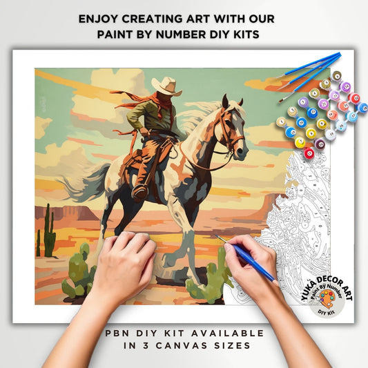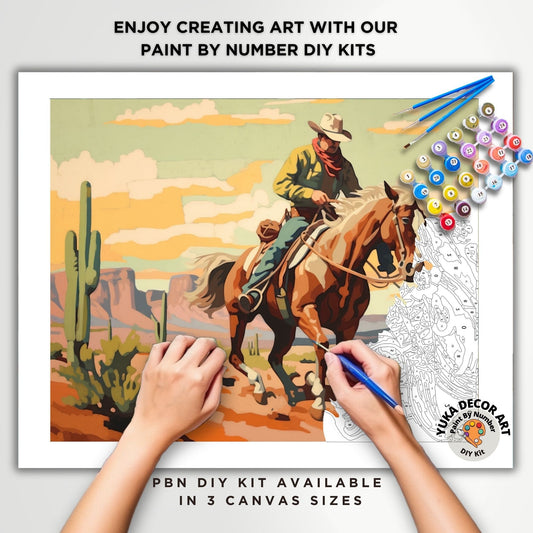 Cowboy PAINT by NUMBER Kit Adult Desert Horse Grand Canyon l Vintage Style Art Easy Beginner Oil Painting DIY Dad Gift Midwest Ranch Decor