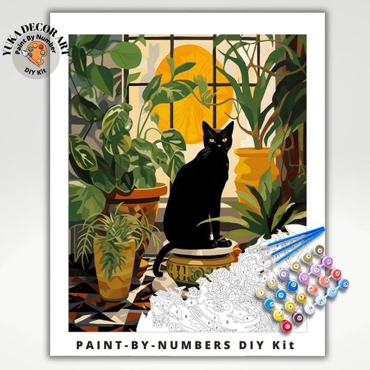 Boho Cat PAINT by NUMBERS DIY Kit Adult Indoor Plants Garden Whimsical Art Easy Beginner Painting Birthday Custom Gift For Girlfriend Mom