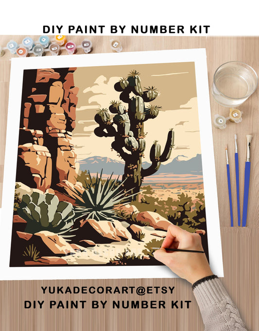 Cactus PAINT by NUMBER Kit Adult Desert Midwest Landscape Painting Easy Beginners DIY Paint Kit Cabin Decor Vintage Theme Desert Art Gift