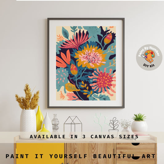 Flowers PAINT by NUMBERS Kit for Adults Modern Boho Whimsical Abstract Easy Beginner Acrylic Paint DIY Kit Wall Art Gift for Mom Custom Kit
