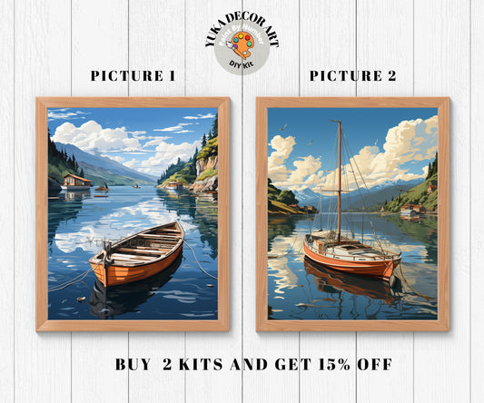 PAINT by NUMBER Adult Kit Vintage Style Art Mountain Lake Fishing Boat Easy Beginner Painting DIY Kit Home Decor Birthday Gift for Mom Dad