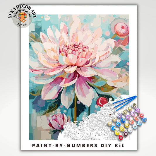 PAINT by NUMBER Kit Adult Dahlia Flowers Vintage Whimsical Pastel Wall Art Easy Beginner Acrylic Paint DIY Kit Mom Dad Gift