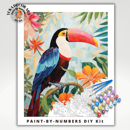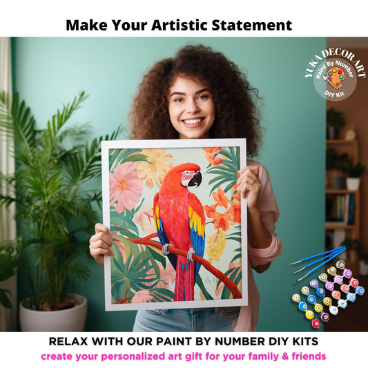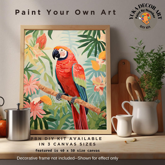 Bird PAINT by NUMBER Kit for Adults Red Parrot Bird Tropical Forest Easy Beginners Vintage Style DIY Paint Kit Home Decor Wall Art Gift