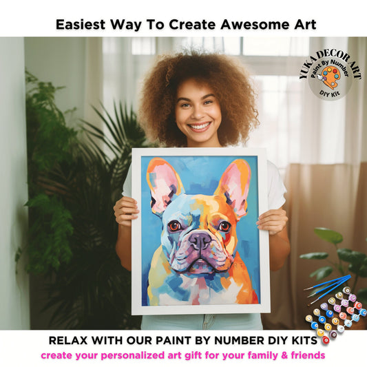 Colorful Pug PAINT by NUMBER Kit Adult , Dog Pop Art , Easy Beginner Acrylic Painting DIY Kit , Diy Gift For Dad Grandpa