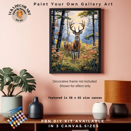 Forest PAINT by NUMBERS DIY Kit Adult Fall Colors Mountain Antlers Art Easy Beginner Acrylic Canvas Painting Cabin Decor Gift For Mom Dad