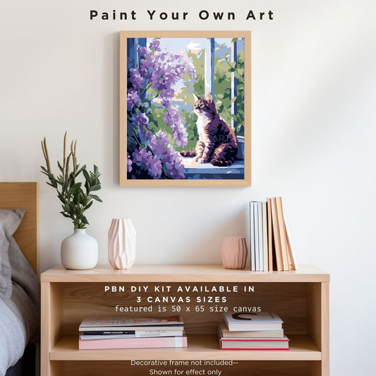 PAINT by NUMBERS Kit Adults Cat In Window Flower Garden Easy Beginners Pastel Colors DIY Paint Kit Wall Art Gift For Mom