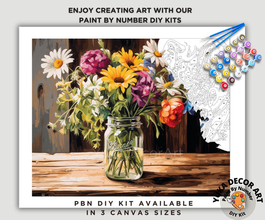 Flowers PAINT by NUMBERS Kit Adults Mason Jar Bouquet Still Life DIY Painting Beginners Canvas Kit Wall Art Birthday Gift Wife Girlfriend
