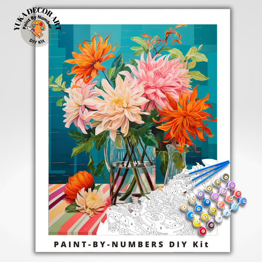 Flowers PAINT by NUMBERS Wall Art Decor Colorful Dahlia Flower Bouquet Vase Color By Number Floral Retro Beginner Adult DIY Painting Kit