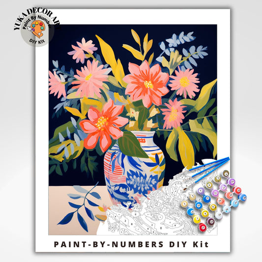 Flowers PAINT by NUMBER Kit for Adults Modern Vase Still Life DIY Painting Easy Beginners Paint Hobby Kit Living Wall Decor Art Mom Gift