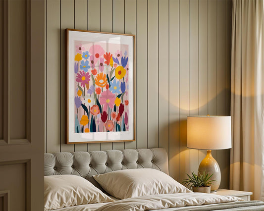 Modern PAINT by NUMBER Kit for Adults , Garden Wild Flowers Floral DIY Painting Colorful Easy Beginners Paint Hobby Kit Wall Decor Art Gift