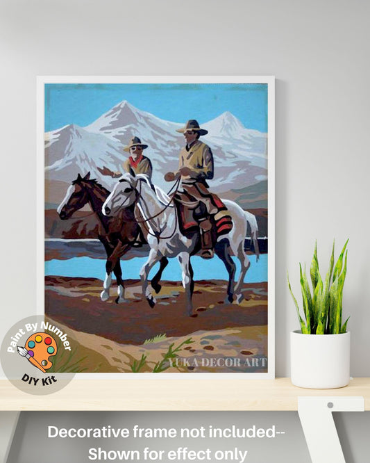 Cowboy Vintage PAINT by NUMBER Kit Adult, Horse Rider In Desert Art , Easy Beginner Acrylic Painting DIY Kit,Vintage Diy Decor Gift