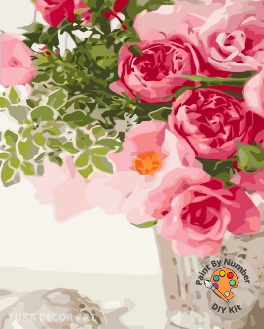 Pink Roses Paint by Number Kit Adult, Flowers Still Life Painting,Easy Beginner Acrylic Paint Kit, Gift For Mom, Home Decor Gift