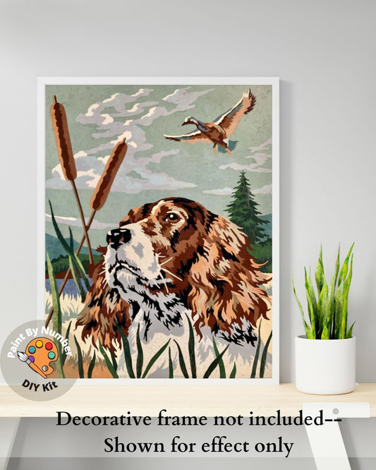 Dog Vintage PAINT by NUMBERS for Adult, Dog in Farm, Flying bird , Easy Beginner Acrylic Painting Kit,Vintage Kitschy Decor Gift