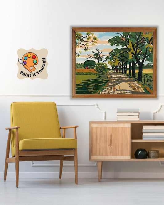 Country Road PAINT by NUMBER Kit for Adult , DIY Landscape Vintage Painting, Easy Beginner Acrylic Painting Kit,Vintage Decor Gift