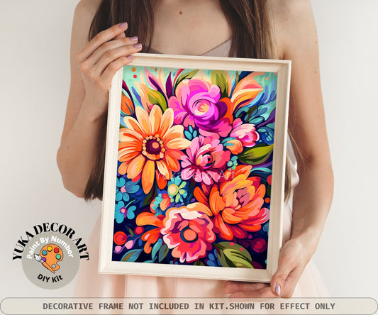 Garden Flower PAINT by NUMBERS Kit for Adults Abstract Flowers Paint Kit Easy Beginners Acrylic Paint DIY Kit Gift for Mom
