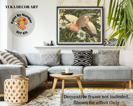 Pink Cockatoo Birds PAINT by NUMBER Premium DIY Paint Kit Adult , Vintage Style Easy Beginner Painting Gift,Wall Decor Gift