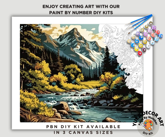 Mountain Forest River PAINT by NUMBER Kit for Adult DIY Nature Vintage Style Art Easy Beginner Acrylic Painting Kit Vintage Cabin Decor Gift