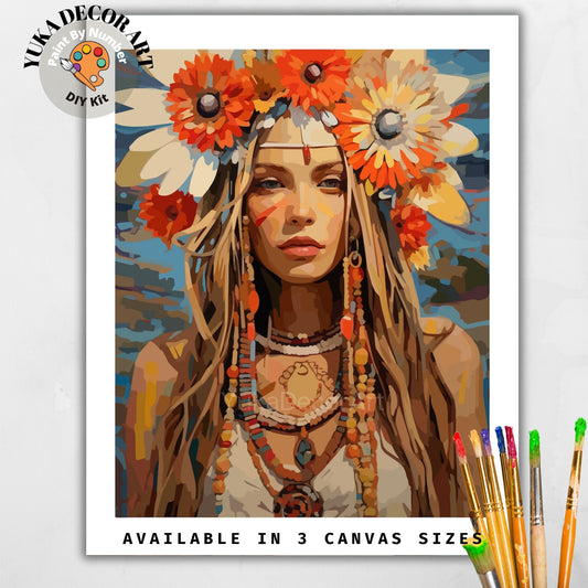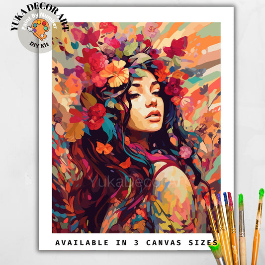 Boho Flower Woman PAINT by NUMBERS DIY Kit Gift Adults Easy Beginners Painting Kit Home Decor Art Bday Gift Girlfriend Wife
