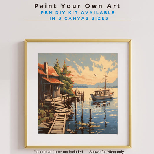 Lakeside Boat Vintage Style PAINT by NUMBER Kit Adult, Landscape Painting, Easy Beginner DIY Paint Kit, Lake Home Gift For Grandfather Dad