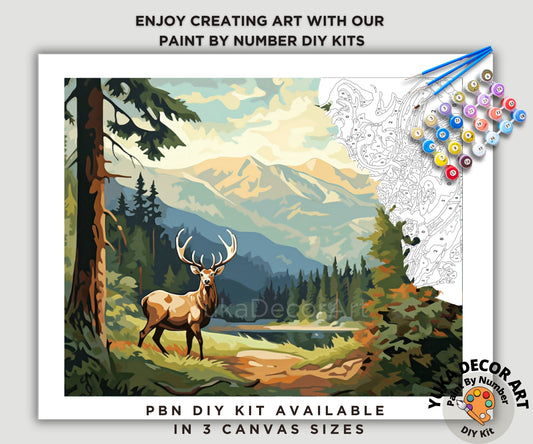 Mountain Stream PAINT by NUMBER Kit Adult , Deers in Forest Vintage Style DIY Art , Easy Acrylic Paint Kit,Christmas Decor Gift
