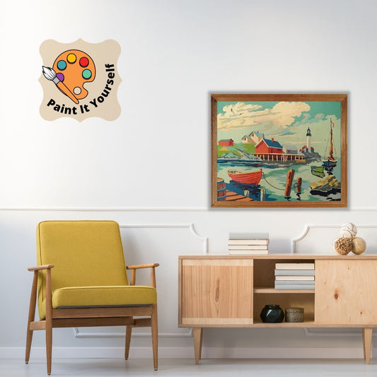 Vintage Style PAINT by NUMBER Kit for Adult DIY Boat Dock painting Easy For Beginners Acrylic Painting Kit Home Decor Christmas Gift Grandpa