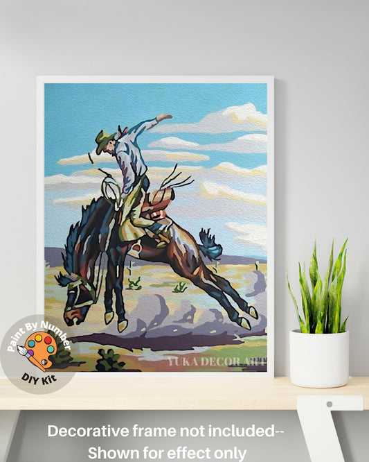 Vintage Style PAINT by NUMBER Kit Adult, Horse Rider , Easy Beginner Acrylic Painting DIY Kit,Vintage Decor Gift , Ranch Wall Decor