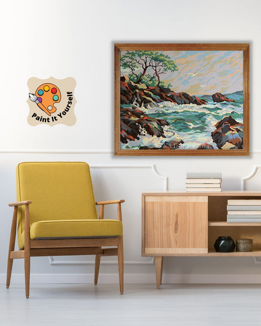 Vintage Style PAINT by NUMBER Kit for Adult , DIY Seashore Waves Painting , Easy Beginner Acrylic Painting ,Vintage Decor Gift