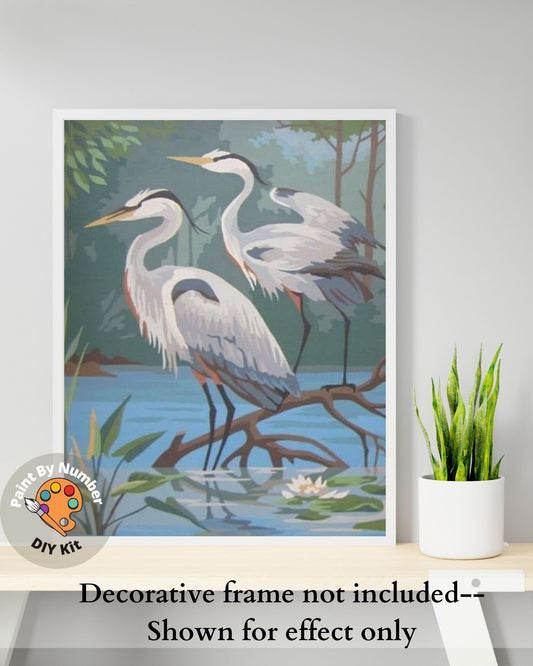 Vintage Style White Heron PAINT by NUMBER Kit for Adult , DIY Paint Kit Birds In Lake , Easy Beginner Acrylic Painting,Home Decor Gift